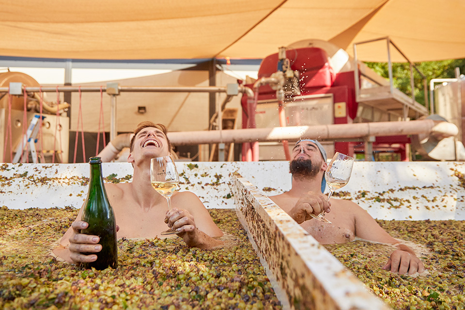 Bujdosó Feri dél-balatoni borász (balra) élvezi a szüretet…