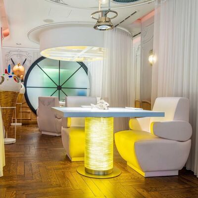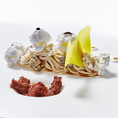 A fúziós, ázsiai elemeket is tartalmazó konyhájában a hozzávalók nagyrésze helyi, spanyol, de a világon bármihez hozzányúl, ha kedve van. A koncepciója Londonban is sikeres volt, az ottani éttermét azonban a Covid idején be kellett zárnia. A madridi étterem már látványra is szokatlan a világos, mégis meghitt zugaival, futurisztikus formáival.