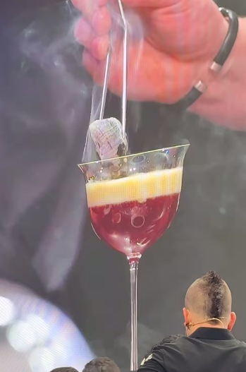 A repülő disznós menü 450 euró, ez a normál, szilárd ételsor. A most bemutatott, 9 fogásos Metamorfosis 2026 menü szintén 450 euró, és a chef azt javasolja, hogy mindkettőt rendeljük meg és kóstoljuk párhuzamosan. Ha pedig valaki nem bír letolni kétszer 9 fogást, akkor annak hibrid megoldást javasol, amely az egyik menü egészét, a másiknak pedig a felét tartalmazza. Ez a verzió 700 euró (italsor nélkül, mert hát az említett italok igazából ételek), ami – ahogy arra Carlos G. Cano, a Cadena Ser gasztronómiai újságírója rávilágított –, a spanyol minimálbér 75%-a. Ha pedig még italsort is kérünk, akár csak a legszerényebb 300 eurós sort, akkor ott is hagytunk egy havi minimálbért.