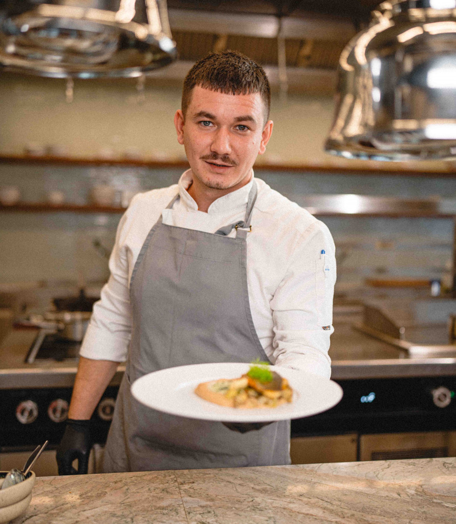 Bár Bicsár Attila az executive chef, ő nincs állandóan jelen, hiszen a villányi éttermet is vezetni kell (Sauska 48), a „rezidens” chef Gerák Máté. Az étlapról is lehet válogatni, de ha már, akkor egyszer élünk, az egyik degusztációs menüt kell megkóstolni, mégpedig a tokaji témájút. 74 000 Ft, de még a vajhoz és magnum pezsgőt töltenek, és vannak még olyan fogások is, mint a padlizsános derelye mádi érlelt sajttal, spenóttal, tokhalkaviárral Birsalmás Furminttal párosítva vagy az érlelt őzgerinc sült zellerrel, céklasalsával, vargányás jus-vel és Sauska Pinot Noir Padi borral. Ez utóbbi bor azért is érdekes, mert Tokajban alapvetően nem készül vörösbor, a pinot noir nem engedélyezett fajta, ezért a Tokaj szó nem kerülhet a címkére, de ettől még ott készült, és bizony Tokaj jól áll a pinot noirnak.